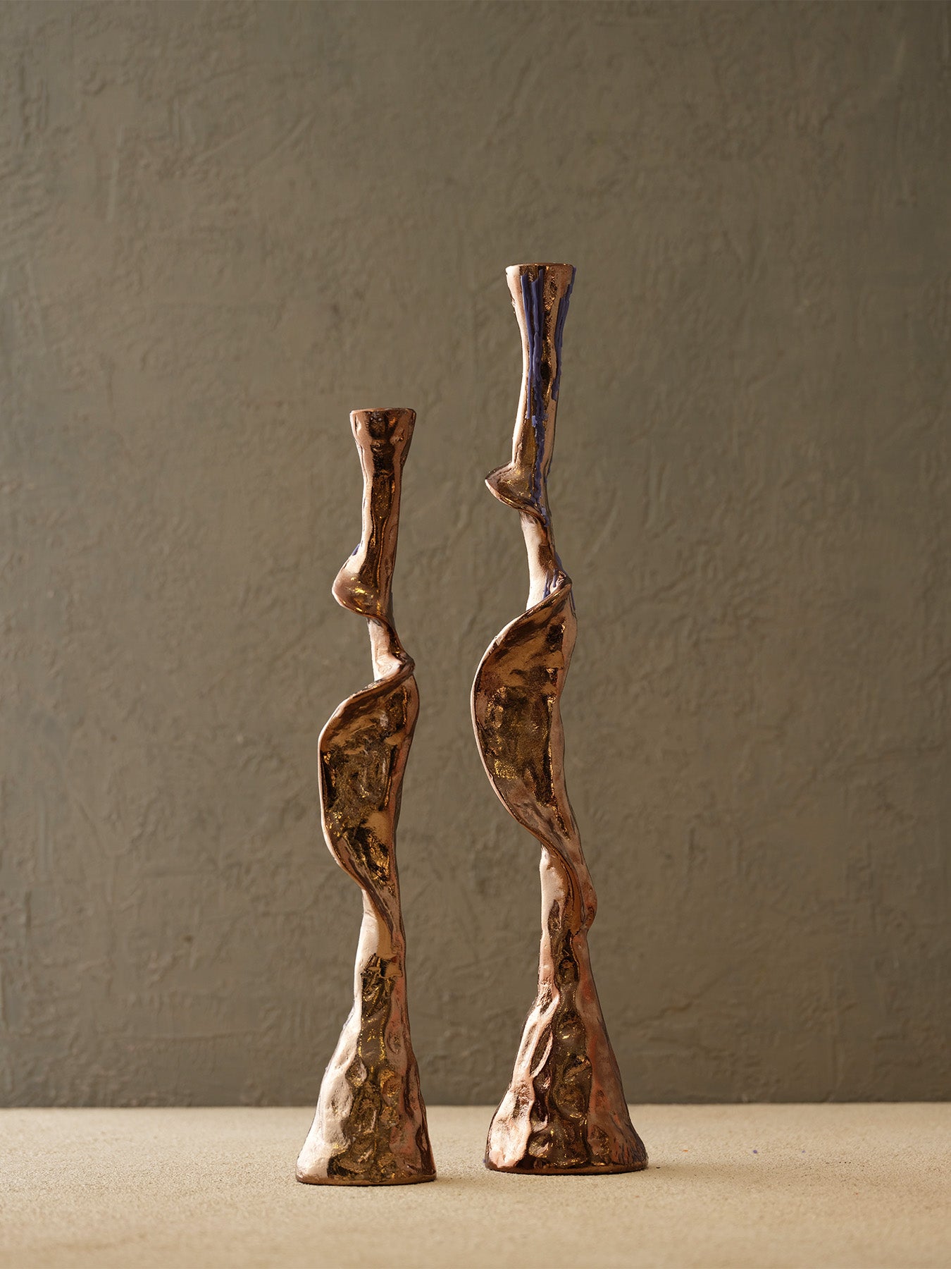 Les bougeoirs Hestia en laiton, façonnés à la main, incarnent l’élégance contemporaine dans sa forme la plus pure. Leurs lignes sculpturales et leur finition soignée en font des pièces d’exception, pensées pour sublimer les intérieurs les plus raffinés.